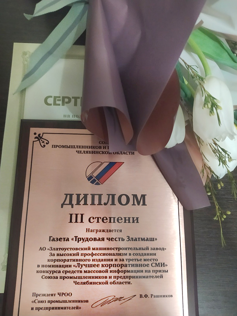 Корпоративная газета «Трудовая честь Златмаш» в очередной раз вошла в список призеров конкурса среди средств массовой информации на призы Союза промышленников и предпринимателей Челябинской области. Диплом за третье место в номинации «Лучшее корпоративное СМИ» – достойная оценка работы нашей редакции на таком высоком уровне!