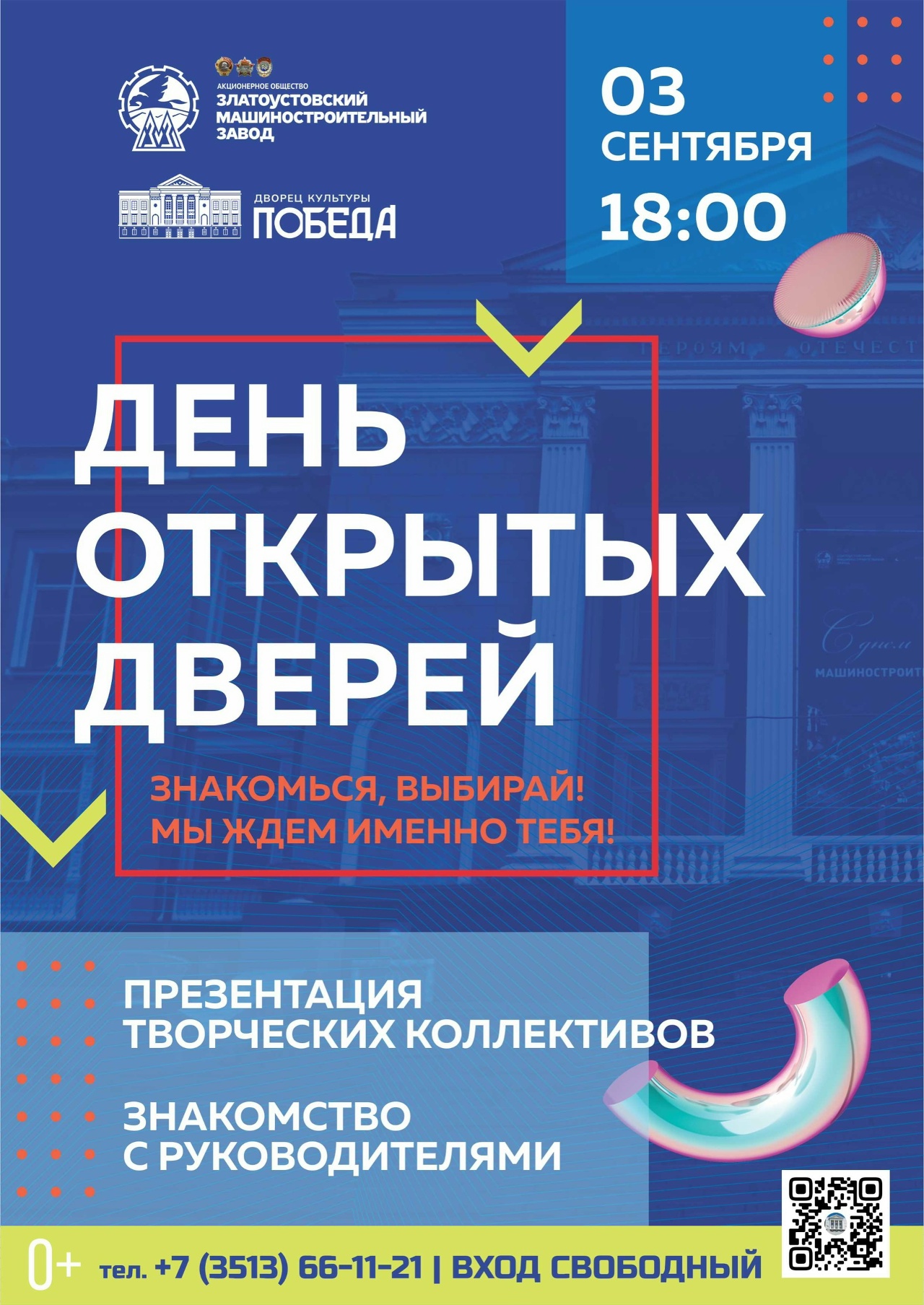 А 3 сентября в 18 часов Дворец Победы распахнет свои двери для юных златоустовцев и их родителей – в этот вечер здесь состоится презентация творческих коллективов и знакомство с их руководителями.